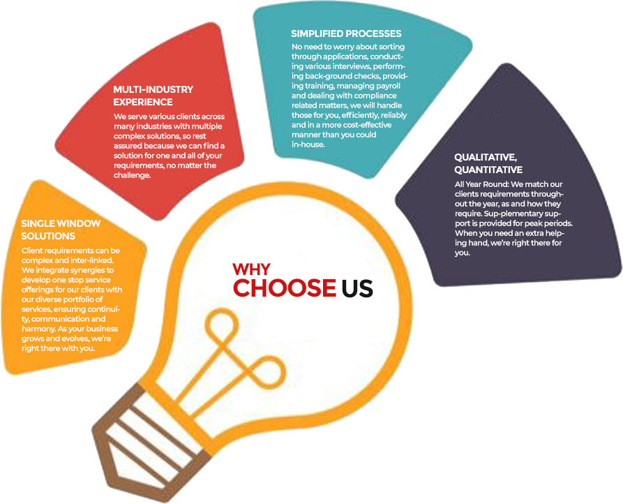 We understand each client has different requirements, their own systems and standards, rules and ideologies. We plan according to our clients setup, requirements and needs to achieve results that have time and again impressed our clients. By meeting all assigned targets, providing consistent services throughout the year, ensuring scalability and providing quick resolutions, we ensure that we are a part of our clients successes, not a broken cog holding them back.